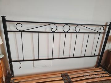 Vendo struttura letto matrimoniale in ferro color antracite scuro. Misure 200x165cm, altezza testiera 117cm, altezza pediera 72cm, altezza laterali 32cm.
