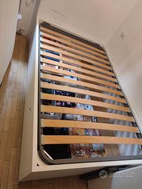 Struttura letto ( senza materasso) misura 200 x 130 cm , rete con doghe in legno, con due cassettoni capienti estraibili; dotato di ruote autobloccanti. Da ritirare smontato direttamente da appartamento al primo piano o eventuale smontaggio e consegna a carico del possibile acquirente
