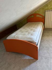 Struttura letto una piazza della Mistral, colore arancione e panna. Venduto senza rete e senza materasso. Lunghezza 200cm, larghezza 100cm, testiera H90cm, pediera H50cm