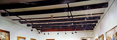 vendo struttura metallica nera, pensile per illuminazione galleria o stanza formata da 12 faretti orientabili neri e struttura mobile in cui alloggiarli