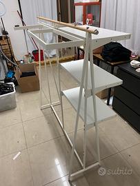 STRUTTURA NEGOZIO Conposto da: - 3 mensole per piegati - 2 ganci jeanseria - 1 gancio a U per appenderia COME NUOVO!