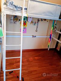 Vendesi struttura per letto a soppalco Vitval Ikea, colore bianco, telo grigio chiaro. Misure in foto