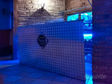 Vendesi struttura porta consolle per DJ, realizzata in lamiera mandorlata di alluminio.