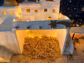 Vendo struttura presepe artigianale fatto a mano, completo di illuminazione led, pannello cielo stellato, lampada effetto fuoco e fontanella, tutto funzionante. Motorino fontanella cambiato quest’anno.