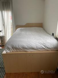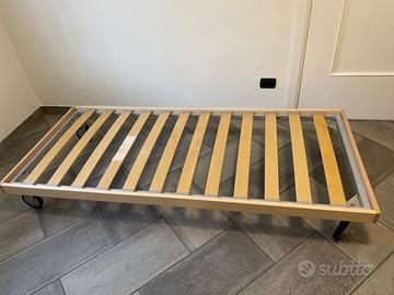 Struttura soppalco utilizzabile per posizionare una scrivania. Lo spazio sottostante può ospitare un letto singolo come quello abbinato (ultima foto). Scala laterale mobile con gradini contenitori.