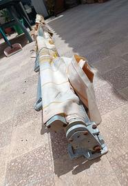 Struttura tenda da sole manuale, con telaio da muro in buone condizioni e tela/tessuto da sostituire. Dimensioni: larghezza 5m, lunghezza 4m (tutta aperta)