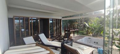 Vendo struttura professionale per area benessere, composta da sauna finlandese, doccia emozionale e bagno turco, ideale per spa, centri estetici, strutture ricettive o ambienti privati dedicati al relax. Design moderno, materiali di alta qualità e impianti perfettamente funzionanti.