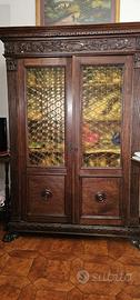 Scrivania+2 librerie a vetri colorati + 2 sedie + 1 sedia con braccioli. Tappezzeria recente in buono stato. Vendita anche dei singoli componenti