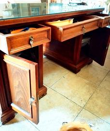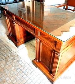 Vendo elegante studio direzionale completo in stile classico/notarile, composto da scrivania importante in legno e poltrona imbottita coordinata. Soluzione ideale per chi cerca un arredamento di carattere per studio professionale, ufficio dirigenziale o ambiente raffinato. Struttura solida in legno (massello) Ampio piano di lavoro con vetro protettivo Cassetti con chiave Ante laterali capienti Design classico ed elegante Poltrona coordinata: Struttura in legno massello Seduta e schienale imbottiti Comoda e robusta Perfettamente in linea con lo stile della scrivania Ideale per studi legali / notarili uffici direzionali ambienti in stile classico o vintage