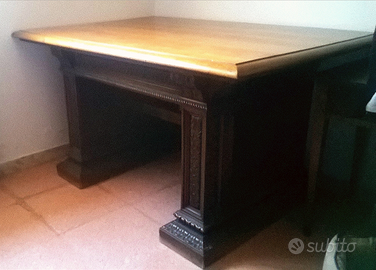 Per studi legali o notarili si vende antico studio in legno di noce, stile rinascimentale produzione prima metà del novecento, credo anni 40-50, da restaurare, composto da scrivania molto grande, e n. 3 librerie, una ad un'anta, una a tre ante (della stessa linea della piccola) e una a quatteo ante di una linea leggermente diversa. Si vendono in lotto intero ad euro 1600 o in mini lotti: Scrivania più n. 2 librerie stessa linea 1400 euro; scrivania più n. 1 libreria linea diversa 1000 euro, n. 2 librerie stessa linea (quella ad 1 anta più quella a 3 ante) 600 euro; Scrivania 450 euro; libreria a 4 ante linea diversa 600 euro. Per ulteriori foto e info primo contatto su subito.