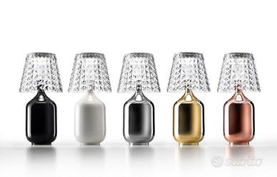 Il paralume trasparente ha una lavorazione che crea borchie luminose che impreziosiscono e valorizzano il suo stile originale.