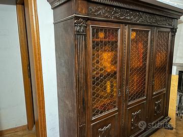 Libreria tre vetrine stile rinascimentale in noce primi del ‘900