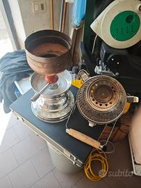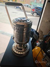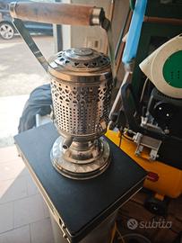 stufa a gas inglese adatta a trasformazione come lampada.effetto bellissimo avendola fatto su una seconda piu' piccola che ho.altezza manico alzato 49 cm ,manico abbassato 36 cm,diametro base 22cm,diametro stufa 19cm
