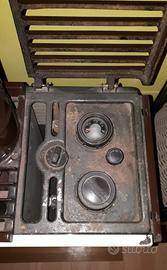 Splendido esemplare di stufa a kerosene, prodotta dalla storica e prestigiosa azienda tedesca HAAS+SOHN. Caratteristiche: - Marchio: Haas + Sohn - Modello: 427 B-LV (come da targhetta) - Origine: Repubblica Federale di Germania (West Germany) - Certificato dalla targhetta originale - Tipo di Combustibile: kerosene - Periodo Stimato: Anni '70/'80 Perfetta sia per utilizzo che come elemento d’arredo, ideale per ambienti rustici, taverne o case di montagna. Condizioni: usato, con normali segni del tempo. Nota importante: Il vetro frontale è stato riparato con silicone specifico per stufe ad alte temperature, come visibile in foto.