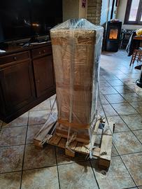 Stufa a legna nuova imballata su bancale in legno