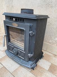 Vendo stufa a legna in ghisa in ottime condizioni colore nero Ideal Star. 5,1kw per ambienti fino a 20 metri quadri. Uscita fumi diametro 130 (con possibile collegamento laterale). Peso: 60kg. Dimensioni esterne: 438x324x609 mm. Dimensioni focolare: 220x300x170 mm.Vetro e vernice resistente alle alte temperature. Attenzione! La stufa è priva di piedini