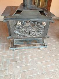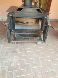 stufa a legna con ventola aria calda, funziona anche da forno.