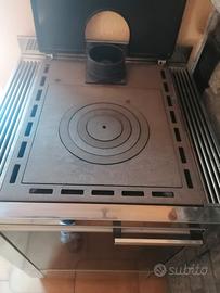 Stufa a legna nuova, mai usata con possibilità di cucinare, misura circa 60 x 60 h. 78. Adatta ad essere inserita in una cucina lineare. Si vende a Fenis