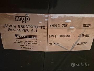Vendo stufa brucia tutto anche carbone marca Argo SL . Stufa in ghisa con piano superiore per cottura. Colore verde smaltato.Materiali: Castello e focolaio interamente in ghisa; pareti interne rivestite in materiale refrattario. Funzionalità: Dotata di piastra ad anelli superiore in ghisa (utilizzabile per cucinare/scaldare cibi). Dimensioni: Circa 38 x 86 x 38 cm (Larghezza x Altezza x Profondità). Scarico Fumi: Diametro standard di 12 cm.