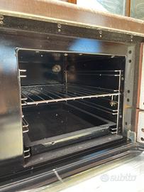 Stufa a legna usata in buone condizioni. Piastra in ghisa, piccolo forno e cassetto per la legna. Marca Vescovi.