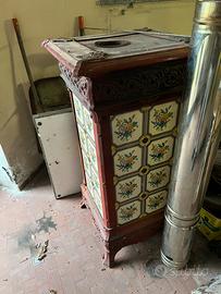 Stufa a legno d’epoca Castelmonte - modello Isolda, rivestita in ceramica, inclusi tubi e base d’appoggio in rame. Ritiro nel comune di Alessandria
