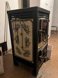 Vendesi stufa a legna bellissima, usata in seconda casa, rivestita con decorazioni in ceramica decorata Non si effettua la spedizione