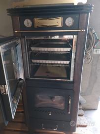 Stufa a legna con forno di grandi dimensioni L40xP50 a tre piani con pietra refrattaria nel ripiano più basso.
