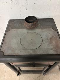 Bellissima stufa a legna, esternamente perfetta, decorata con maioliche rosse. Consigliato a chi ha praticità con questo tipo di oggetti o ha le capacitá per farla funzionare.