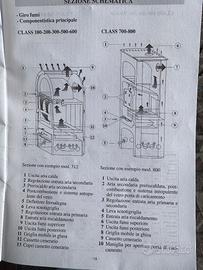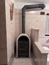 Stufa a legna usata con ventilazione elettrica. Filtro elettrostatico abbattimento particelle. Rivestimento in terracotta smaltato a forno (possibile avere anche un secondo set di scorta) Potenza 9 KW. Mandata aria calda in altre due stanze, mediante tubi posteriori. Possibile consegna entro 10/15 km, da concordare.
