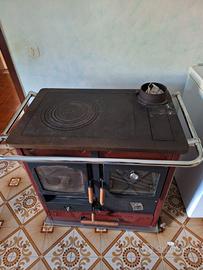 Stufa CTM alimentata a legna, combustibile rinnovabile ed ecologico, rappresenta un vero e proprio sistema di riscaldamento; e' una soluzione sostenibile ed efficiente che garantisce elevato risparmio energetico e nello stesso tempo consente di godere la fiamma ed il fascino di un fuoco scoppiettante in casa. Con questa stufa a legna siete dotati di un riscaldamento adeguato, con la possibilita' di allacciarsi all'impianto sanitario. C’è poi una terza funzione che ha radici storiche molto profonde: la cucina, completa di piano cottura e forno, per preparare i pasti mentre si riscalda la casa. Grazie al suo aspetto questa stufa si adatta perfettamente in qualsiasi stanza. Ideale per case di campagna ed agriturismi. Dimensioni cm 100 x 65 x80. Colore come in foto, rosso bordeaux.