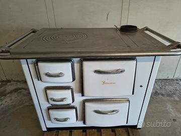Come da foto vendo Stufa a legna termocucina Frencescon. Si presenta in perfette condizioni. Perfettamente funzionante. Si può collegare ai termosifoni e scaldare tutta la casa . Ampia piastra superiore e forno laterale. Nel prezzo cedo anche cappa fumaria e tubi canna fumaria