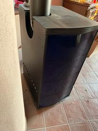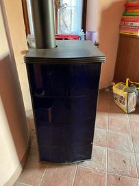 Stufa a legna con profilo in porcellana blu come nuova, usata solamente un paio di volte.