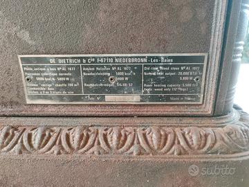 Stufa a legna vittoriana in ghisa antica di De Dietrich & Niederbronn. Stufa a legna vittoriana del XIX secolo in ghisa antica decorata di De Dietrich & Niederbronn.