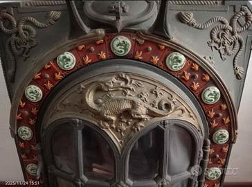 Stufa Antica in Ghisa “La Salamandre” – Maioliche e Ottone Originali