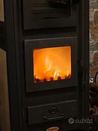 Ottima stufa a legna attualmente in funzione perfettamente funzionante molto bella Scalda fino a 100m di casa Ritiro in loco dopo averla vista