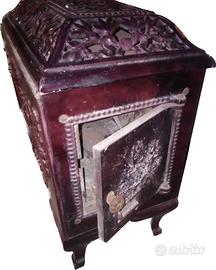 Stufa in fusione di ghisa, dei primi del 900. Dimensioni: Larghezza 47 cm Profondità 28 cm Altezza 52cm. La stufa si trova in una casa a circa un quarto d'ora da Pistoia. Visionabile personalmente. Ritiro a cura dell'interessato.