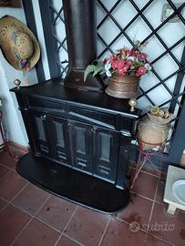 Stufa a legna in ghisa perfettamente funzionante completa di tubi scarico fumi.