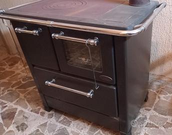 Stufa a legna in ghisa che offre la possibilità di cucinare sul piano e nel forno. Ottima per un rustico. Le misure sono: altezza 85 cm. larghezza 94 cm. e profondità 59 cm