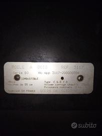 Stufa a legna in ghisa con rivestimento di colore blu. Carico frontale o laterale.