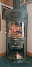 Stufa a legna danese Hwam modello Mozart in buone condizioni con pietra ollare di 20 kg e più di un metro di tubo di diametro 15 e tubo a curva.