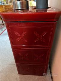 Privato vende splendida stufa a legna con rivestimento in ceramica lavorata. Ottima resa termica, ideale per scaldare grandi ambienti con un basso consumo di legna. Condizioni: Eccellenti, ceramica integra e focolare in perfetto stato. Design: Colore rosso bordeaux con decori floreali in rilievo. Dimensioni: altezza 98, larghezza 55, profondità 48 Accessori: Inclusi set attrezzi in ferro battuto e bollitore in acciaio. Ritiro: A carico dell'acquirente ad Atri Contattare solo se realmente interessati. No perditempo