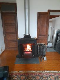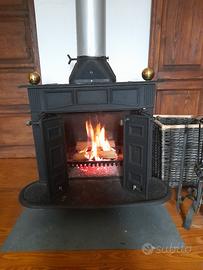 vendo stufa/caminetto a legna usata poco, bella esteticamente,tutta in ghisa con pomelli in ottone, porte apribili a soffietto,tubo da 20 cm con valvola basculante per ridurre il tiraggio,