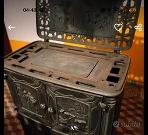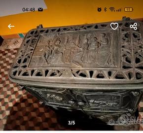 Stufa a legna in ghisa austriaca, con decori tridimensionali in rilievo su 4 facciate, completa di base di appoggio sempre in ghisa. Ottima per scaldare l'ambiente in poco tempo. Adatta per case di campagna o montagna. Zona Asti prezzo euro 450.00 tel 3388992327