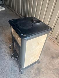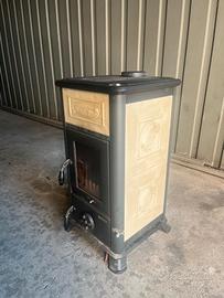 Stufa ricoperta con piastrelle di maiolica, Dimensioni: altezza circa 110 cm. fornita con i tubi color nero. Si trovava nella sala da pranzo di una villa prestigiosa. Perfettamene funzionante. E' un piacere vedere il ceppo che arde.