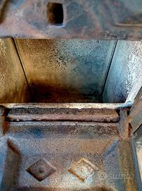 Stufa in ghisa, per le sue dimensioni è facilmente collocabile in qualsiasi ambiente un corridoio un cucinino in un piccolo alloggio ecc... altezza da chiusa 77cm ,larga 42cn ,profonda 33cm ,la vendo 240 euro ritiro in loco Tromello (Pavia)