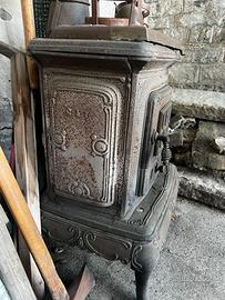 Design vintage ispirato alle stufe americane dell’800, con sportelli decorati e struttura solida.