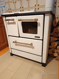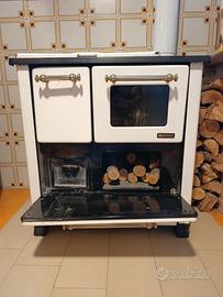 Vendo bellissima stufa a legna La Nordica, colore bianco smaltato con finiture nere e maniglie cromate.