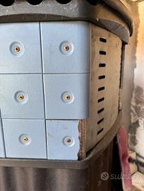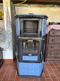 Stufa a legna lincar 175 in ghisa e ceramica con forno Colore azzurro polvere/ carta da zucchero Buono stato come da foto ( aggiornate) Ritiro in loco a carico dell’acquirente