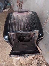 stufa a legna impolverata ma praticamente mai usata senza tubi di scarico fumi