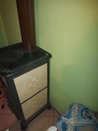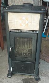 Stufa a legna in ghisa con rivestimenti in ceramica / maiolica – usata, buon funzionamento
